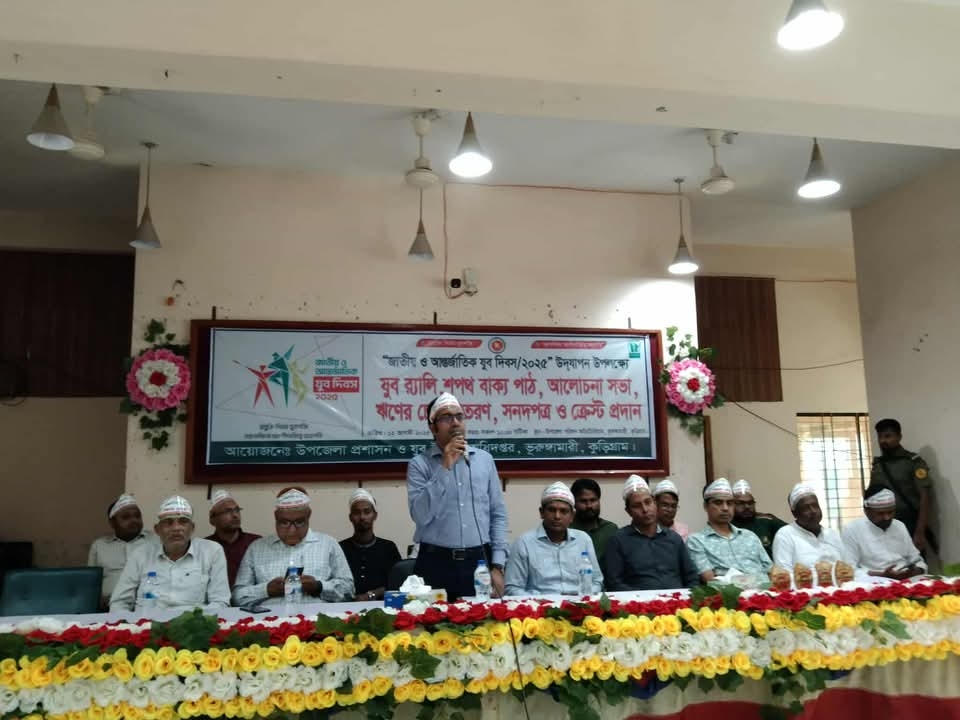 জাতীয় ও আন্তর্জাতিক যুব দিবস ২০২৫ যথাযোগ্য মর্যাদায় ও উৎসবমুখর পরিবেশে উদযাপন করেছে উপজেলা প্রশাসন ও যুব উন্নয়ন অধিদপ্তর, ভুরুঙ্গামারী, কুড়িগ্রাম। দিনব্যাপী আয়োজিত এই অনুষ্ঠানে ছিল রঙিন র্যালি, শপথ বাক্য পাঠ, আলোচনা সভা, ঋণ চেক বিতরণ, সনদপত্র ও ক্রেস্ট প্রদানসহ নানা কর্মসূচি।