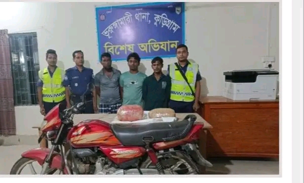 ভূরুঙ্গামারীতে ৬ কেজি ভারতীয় গাঁজাসহ শ্বশুর-জামাই ও ভাগ্নে গ্রেফতার।
