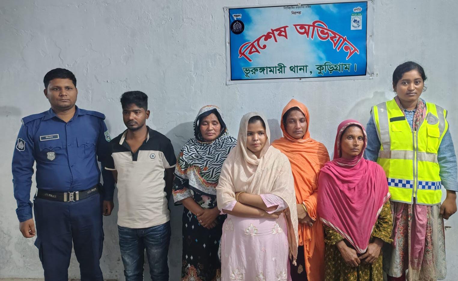 রবিবার (৯ নভেম্বর) রাত আনুমানিক ৯টার সময় ভূরুঙ্গামারী-কচাকাটা সার্কেল অফিসার সহকারী পুলিশ সুপার মুনতাসির মামুনের নেতৃত্বে সোনাতলী এলাকার জরিনা বেগমের বাড়িতে অভিযান পরিচালনা করে তাদেরকে আটক করা হয়।