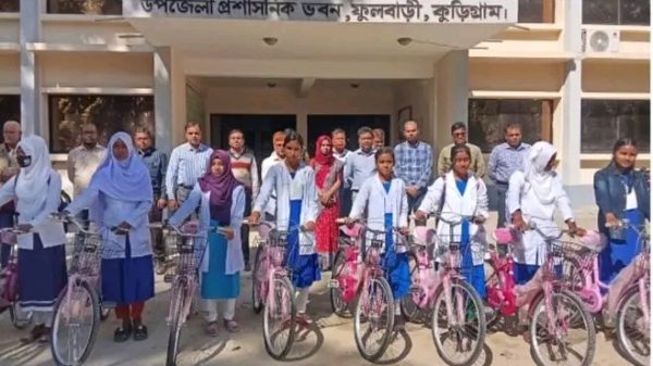 কুড়িগ্রামের ফুলবাড়ীতে বার্ষিক উন্নয়ন কর্মসূচি (এডিপি) প্রকল্পের আওতায় গরিব ও মেধাবী শিক্ষার্থীদের মধ্যে বিনামূল্যে বাইসাইকেল বিতরণ করা হয়েছে।