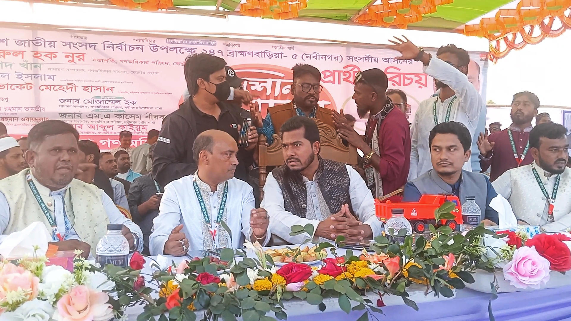 উক্ত জনসভায় নবীনগর উপজেলা গণ অধিকার পরিষদের সভাপতি এডভোকেট মেহেদী হাসানের সভাপতিত্বে প্রধান অতিথি হিসাবে বক্তব্য রাখেন ডাকসুর সাবেক ভিপি গণ অধিকার পরিষদের সভাপতি নূরুল হক নূরু।