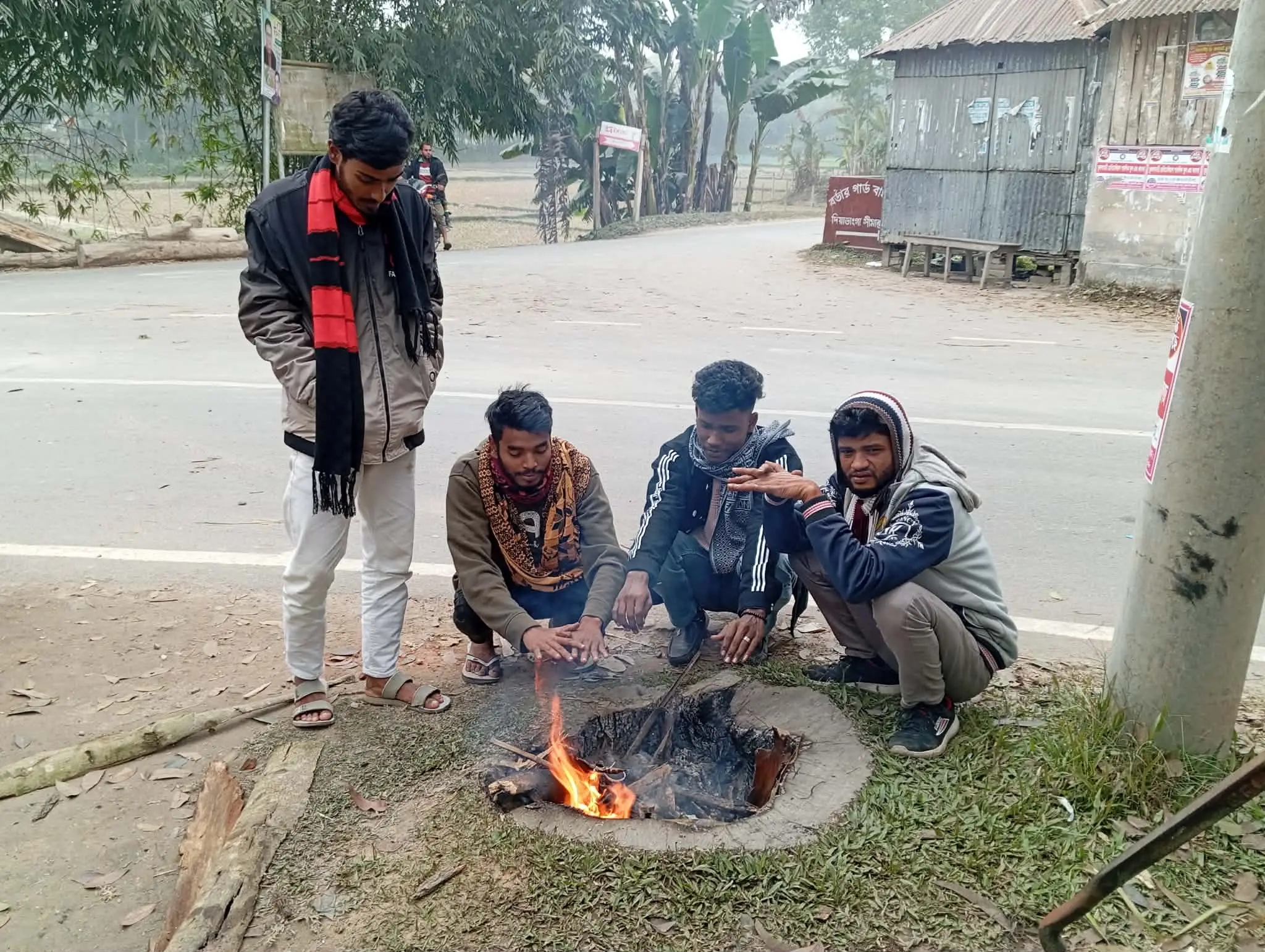 কুড়িগ্রামের ভূরুঙ্গামারীতে বাড়ছে শীত–কুয়াশার দাপট, আগুন জ্বালিয়ে ঠান্ডা নিবারণের চেষ্টা।